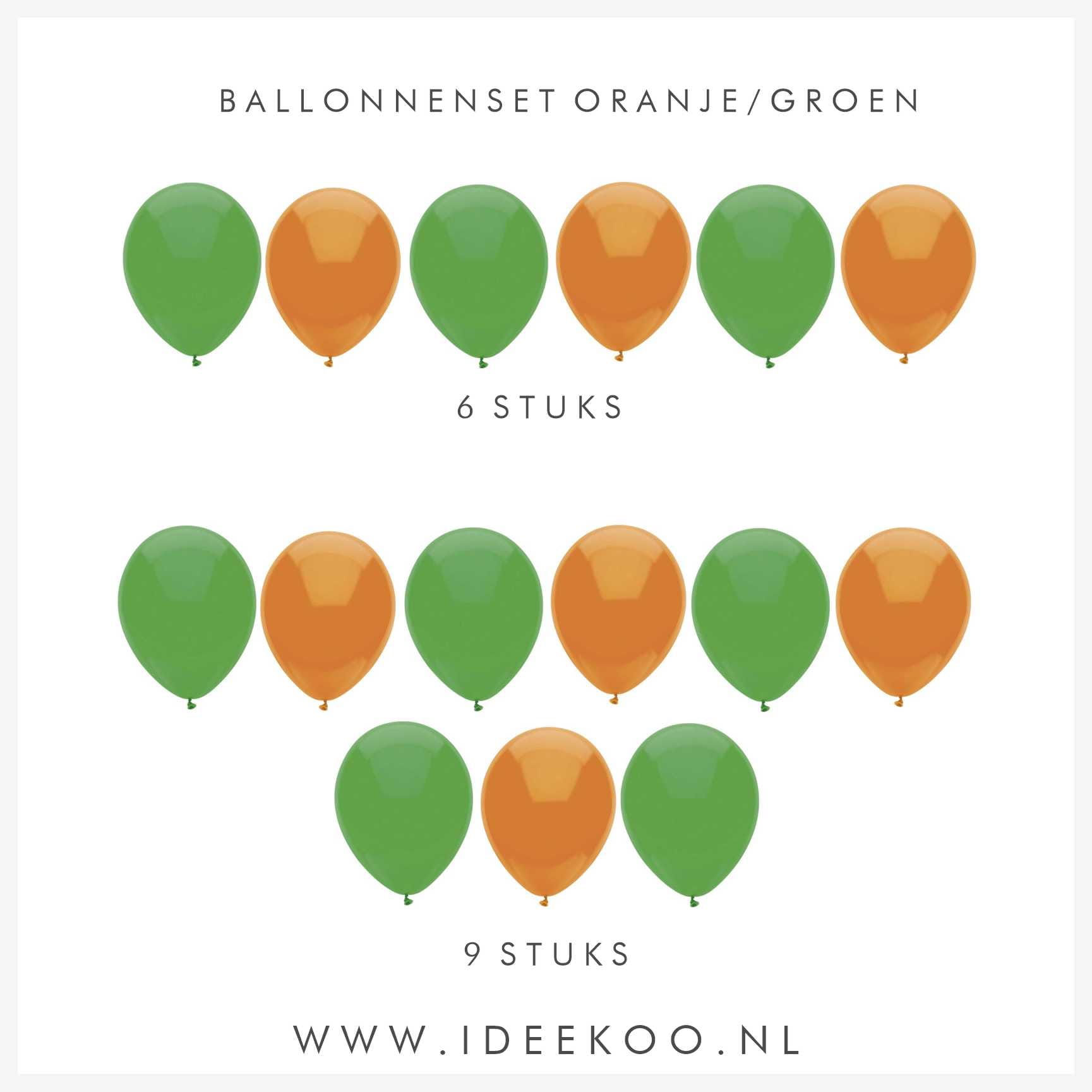Wat is een carnavalsfeest in zonder ballonnen? Ballonnen groen/oranje 30cm set van 6 of 9 stuks.