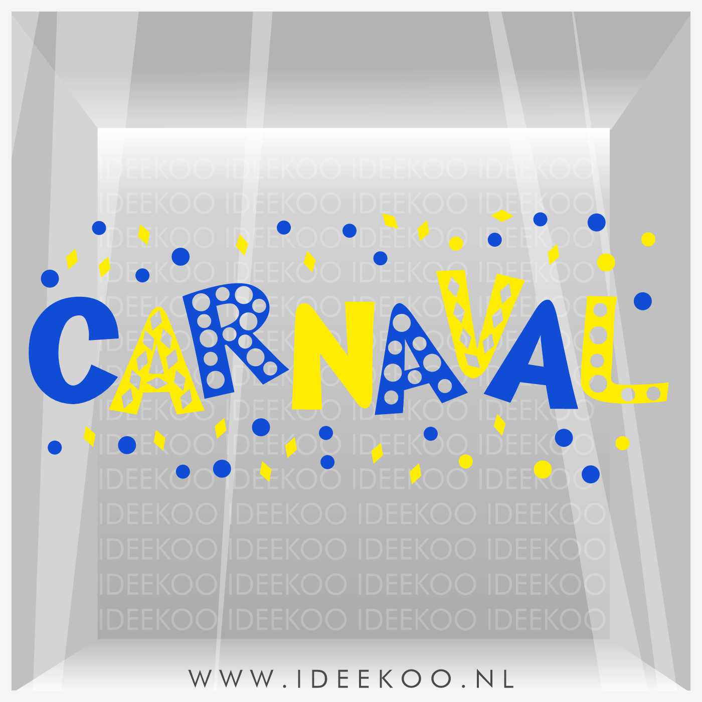 Herbruikbare raamsticker Carnavalsticker CARNAVAL wit zwart, inclusief confetti, gemaakt van statisch vinyl.